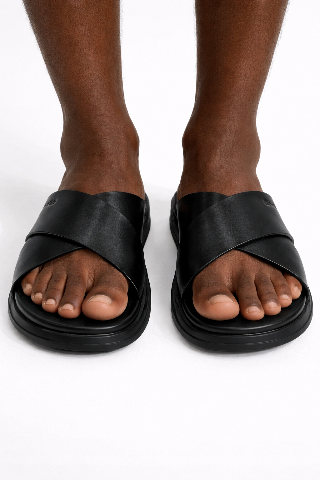 Redefine casual sophistication with the ENZO Men’s Leather Slippers—where sleek minimalism meets everyday utility. Featuring premium leather crossover straps in an effortless slip-on silhouette, these slippers blend sharp aesthetics with all-day comfort. The contoured footbed and lightweight sole ensure stability with every step, making them perfect for both lounge and street-ready looks.