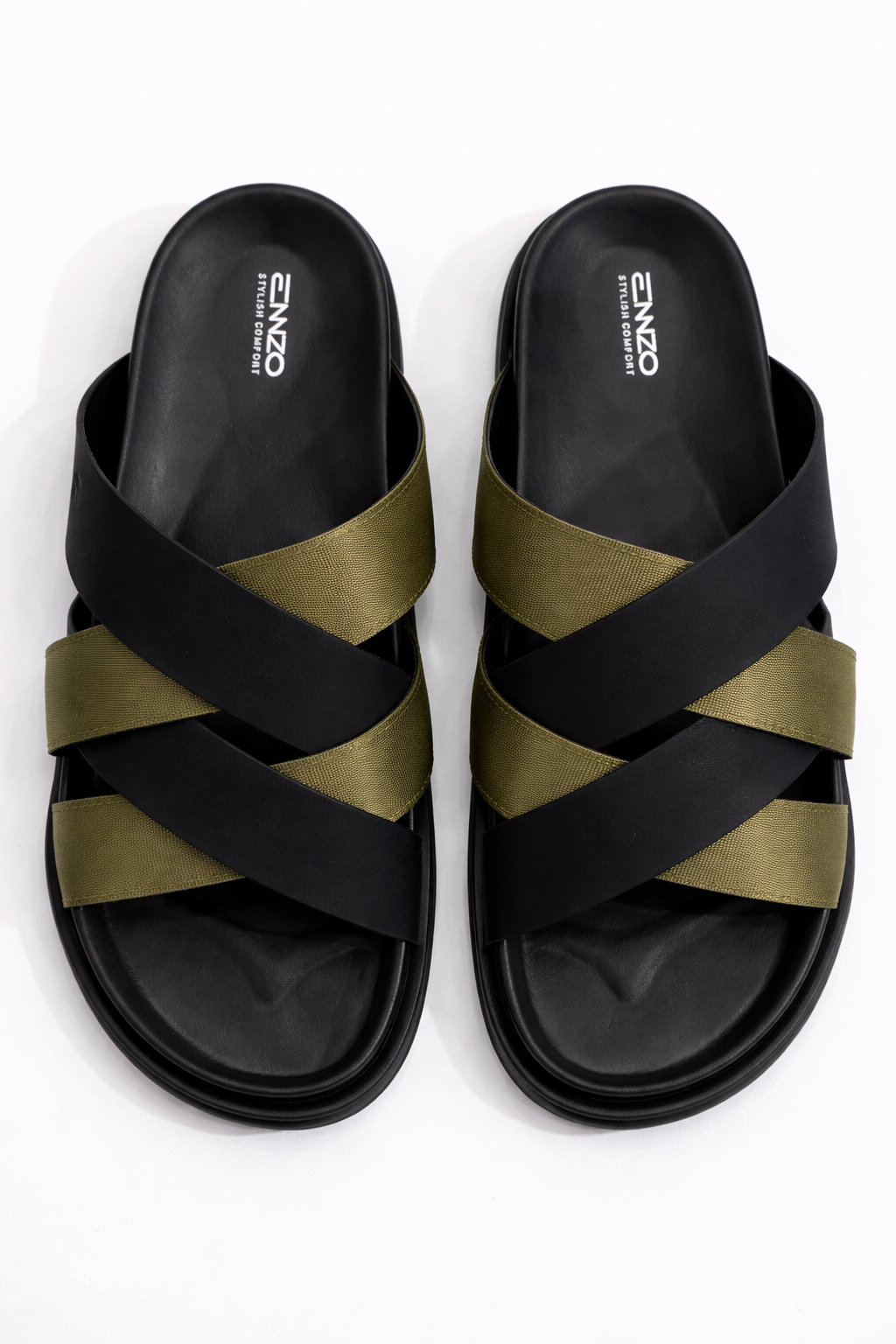 Blend effortless style with everyday comfort in this Cross-Strap Slide Sandals. Crafted with durable synthetic leather, these sandals feature bold crisscross straps in a sleek dual-tone design—Black and Khaki—for a modern yet versatile statement. The cushioned footbed and molded sole offer a secure fit and all-day ease, perfect for off-duty styling or warm-weather essentials.