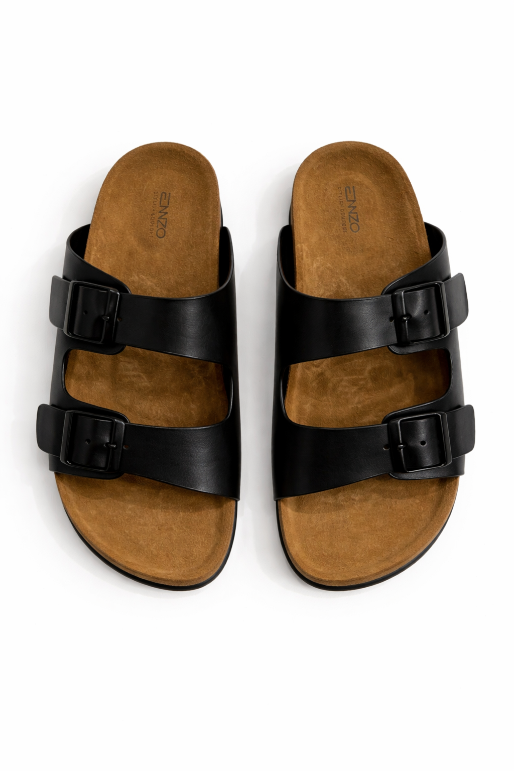 Step into laid-back refinement with the ENZO Men’s Leather Slippers—where sleek design meets ergonomic comfort. Featuring dual adjustable leather straps with tonal buckles, these slippers deliver a secure fit with minimalist appeal. The contoured cork footbed molds to your stride, while the suede-like lining adds a soft touch underfoot.