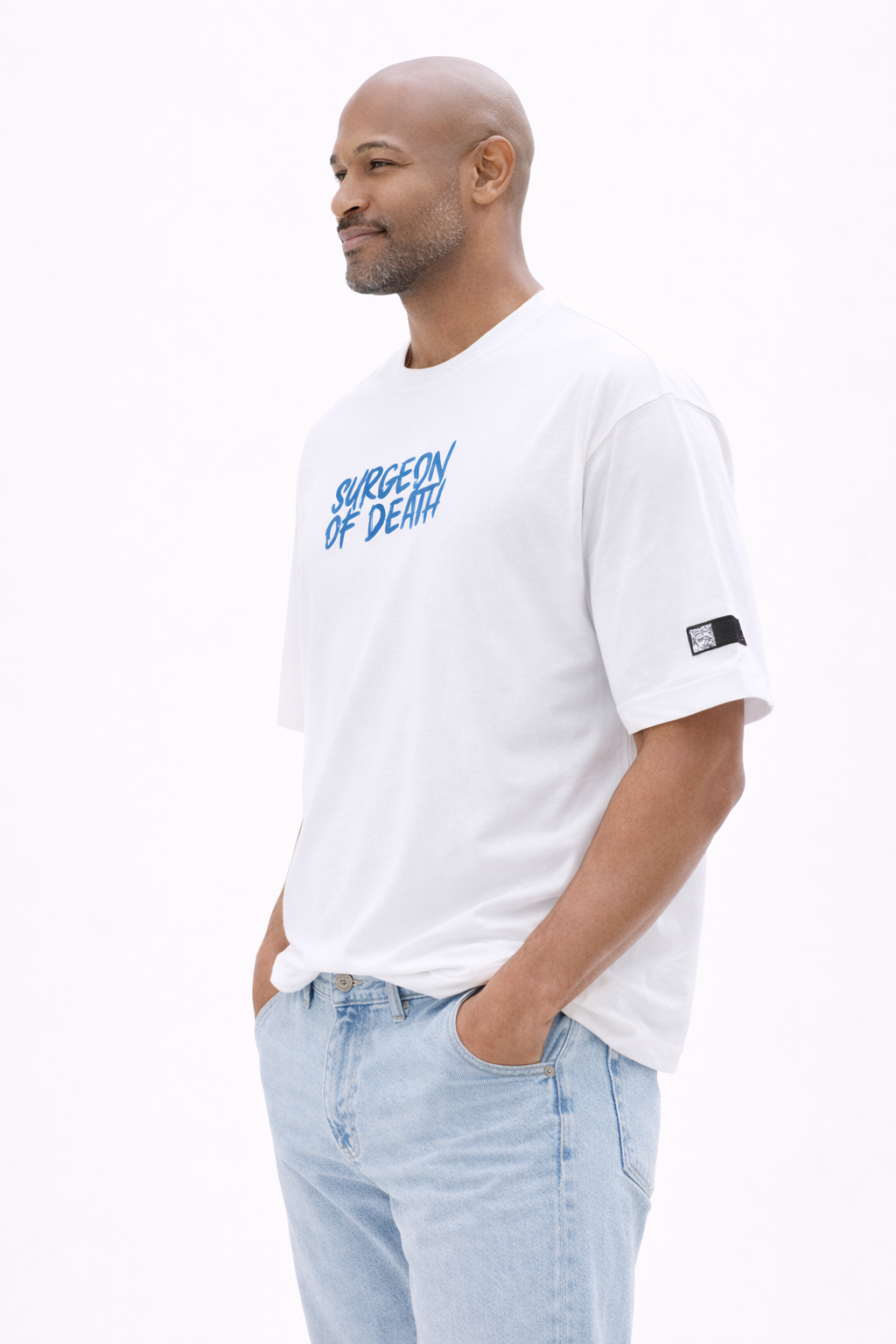 Designed for fans of iconic anime culture, this white graphic T-shirt is a standout addition to any casual wardrobe. Featuring character-inspired artwork on the front and back, it showcases bold details and text that reference the persona known as the “Surgeon of Death.” Cut in an oversized fit and crafted from soft cotton, it delivers all-day comfort with a relaxed, contemporary look.